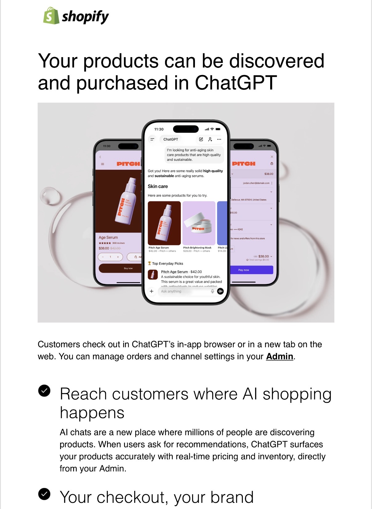 I got an email from Shopify this week that my products are available in ChatGPT now: